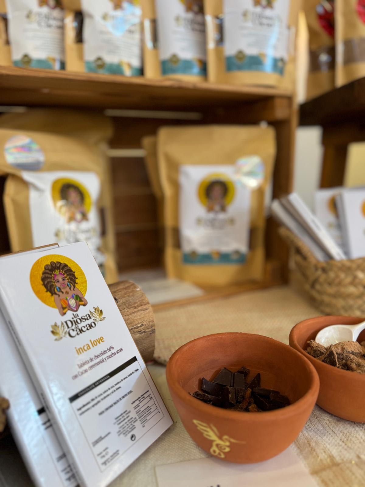 INCA LOVE is a 66% cacao chocolate bar created by La Diosa del Cacao (The Cacao Goddess), where ceremonial cacao is combined with ancestral spices, superfoods, and an artisanal process that honors the sacred.